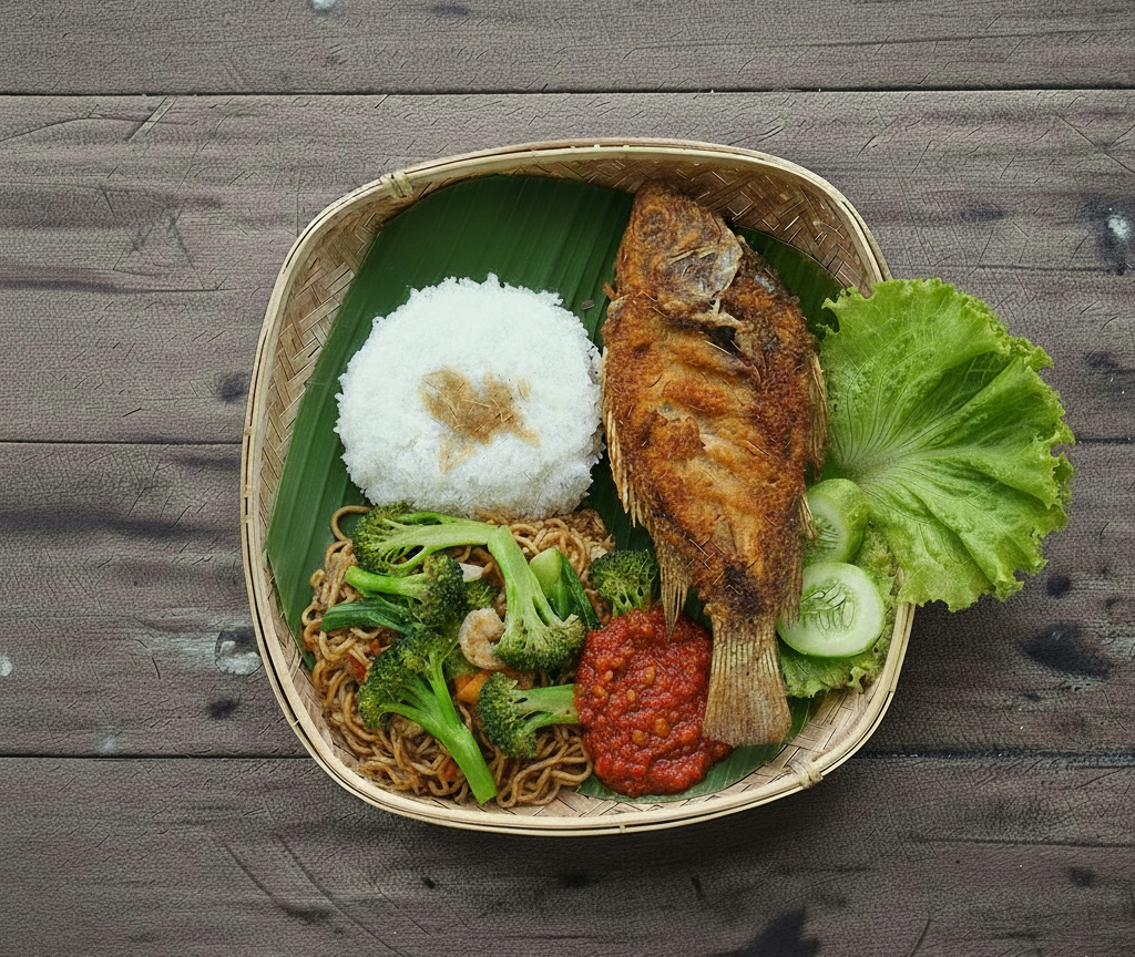 Paket berkat ini dibuat untuk Anda yang ingin hidangan praktis tapi tetap terasa lengkap. Menu utamanya memakai ikan nila yang bisa dipilih sendiri olahannya.